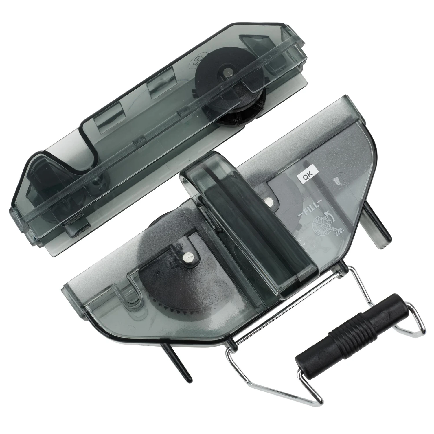 We’ve designed this chain cleaner for quickly and effectively cleaning your bike chain. Can be used on all types of chains and bikes.This chain cleaner is made up of 2 compartments, 3 rotating brushes, and a removable handle. It removes all dirt from the chain. Remember to rinse it for optimum results.