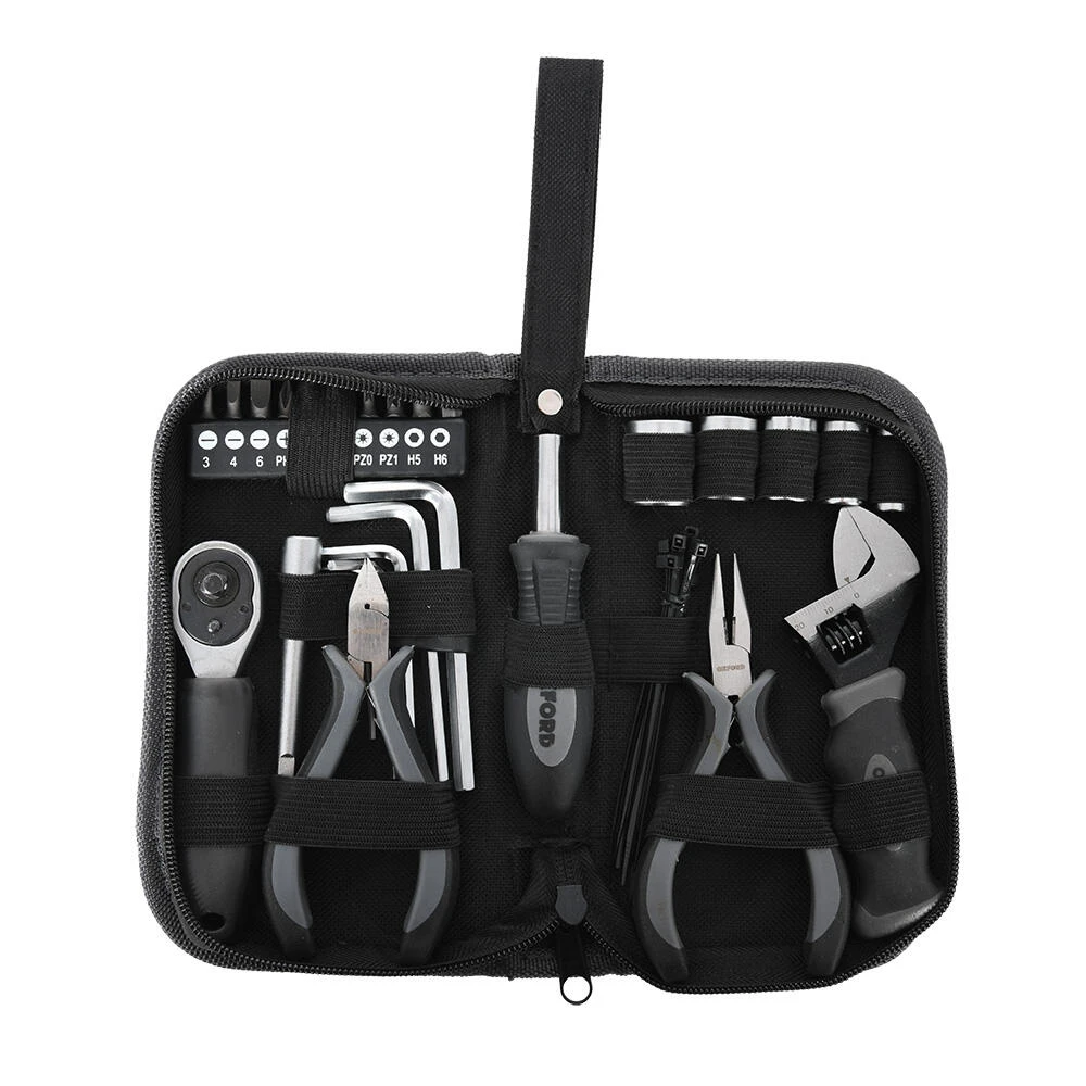 A comprehensive 27 piece premium motorcycle tool kit