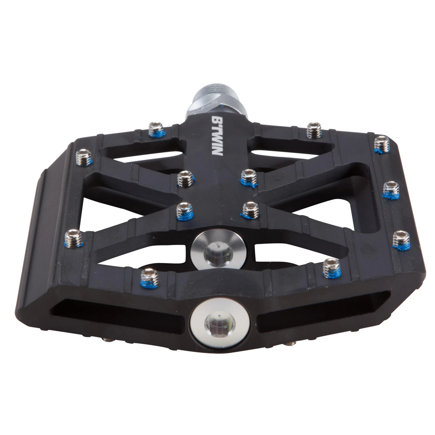 Our 900 flat pedals are made from aluminium for adults doing all-mountain, enduro or freeride mountain biking.Enjoy increased stability and control for even longer while riding, all thanks to these flat pedals’ width and adjustable studs.